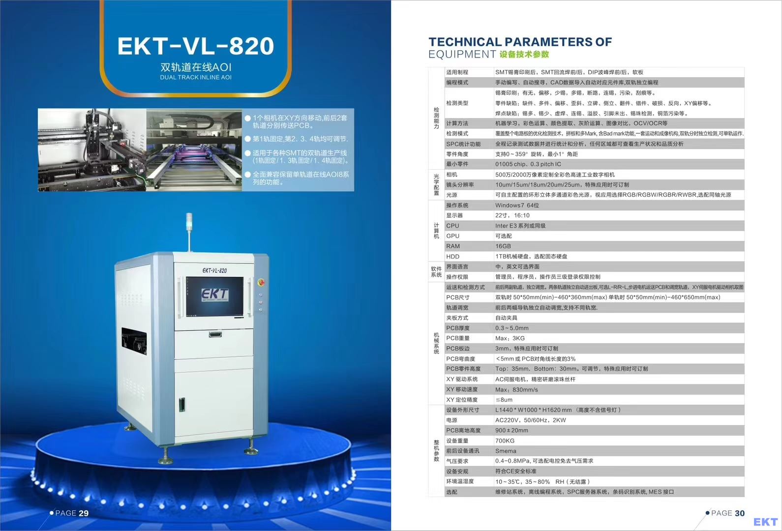 1、設(shè)備名稱: 在線雙軌AOI自動(dòng)光學(xué)檢測(cè)儀( 設(shè)備型號(hào):EKT-VL-820 )